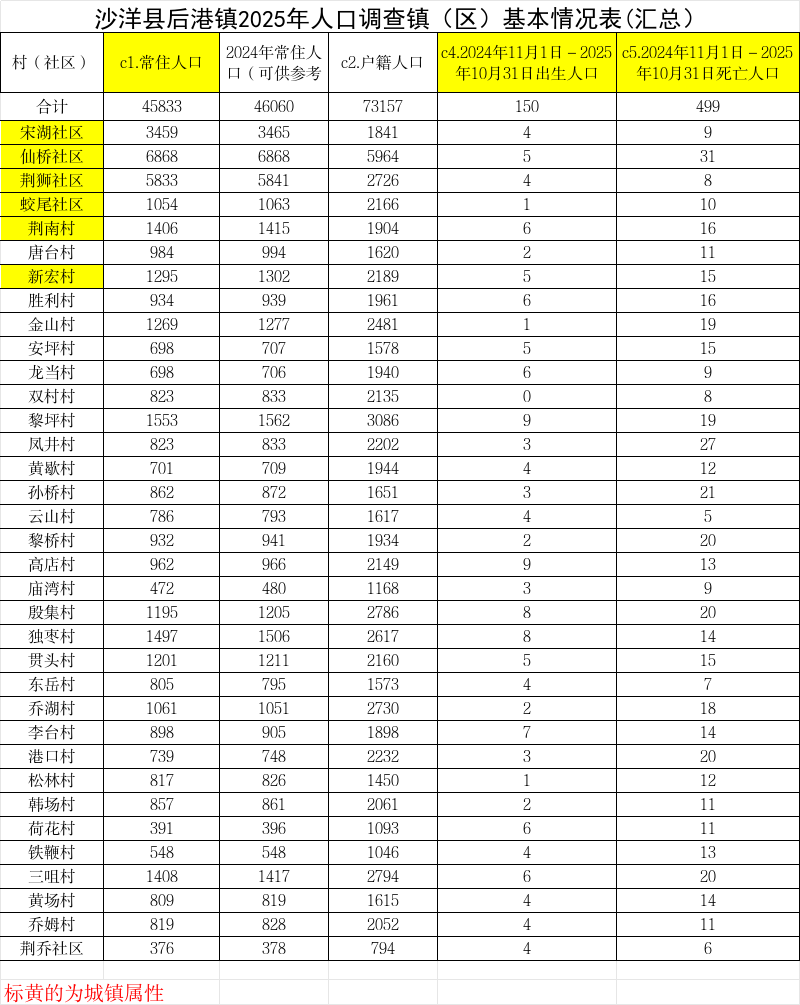 本文讲述后港镇2025年各村(社区)人口、户数等基础数据,以表格形式汇总呈现,为区域发展提供参考依据。