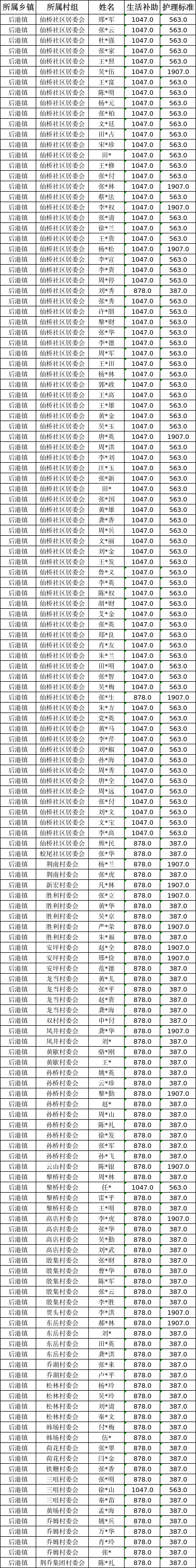 【社会救助】后港镇2025年2月五保发放明细