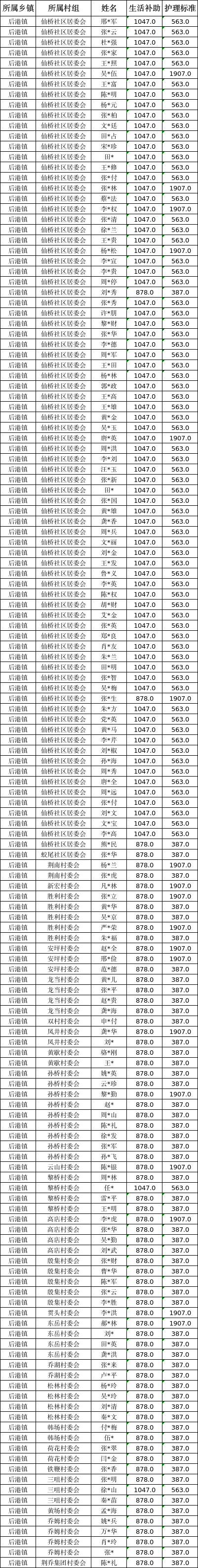 【社会救助】后港镇2025年1月五保发放明细